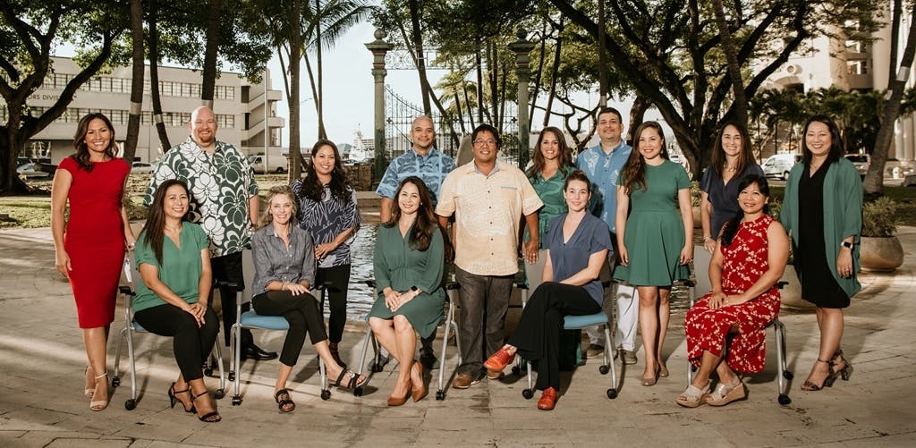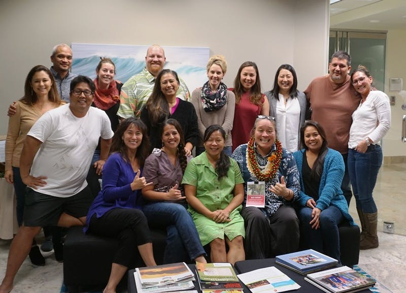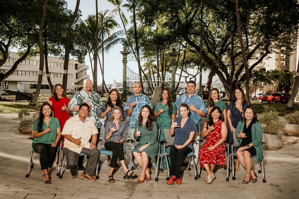 Shelee Kimura, Randy Ching, Rachael Wong, Mahina Paishon, Noelani Kalipi, Nicole Velasco, and Gabe Amey