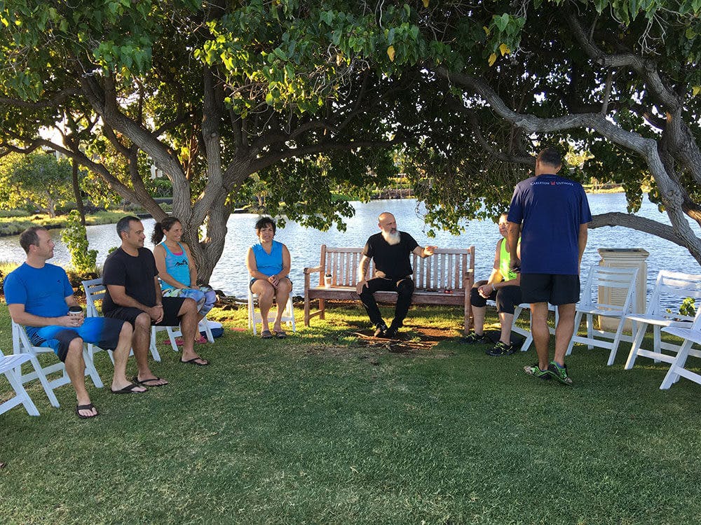 Fellows after a seated outdoor meditation at the ʻĀina and Awareness Retreat.