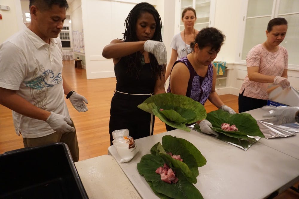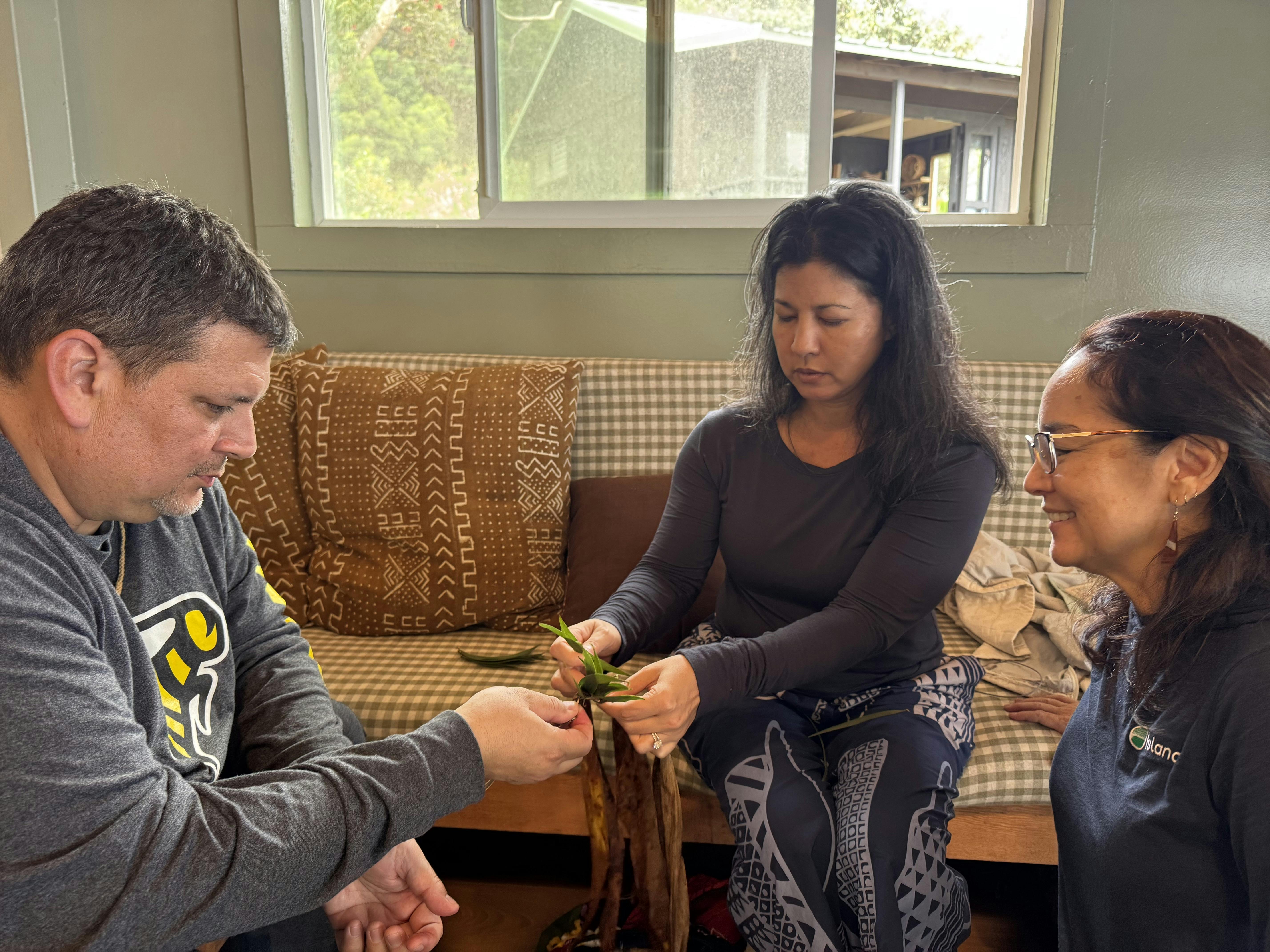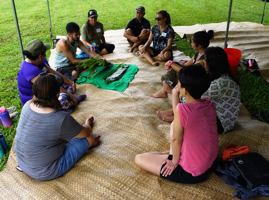 Fellows making lei at the ʻĀina and Awareness Retreat.