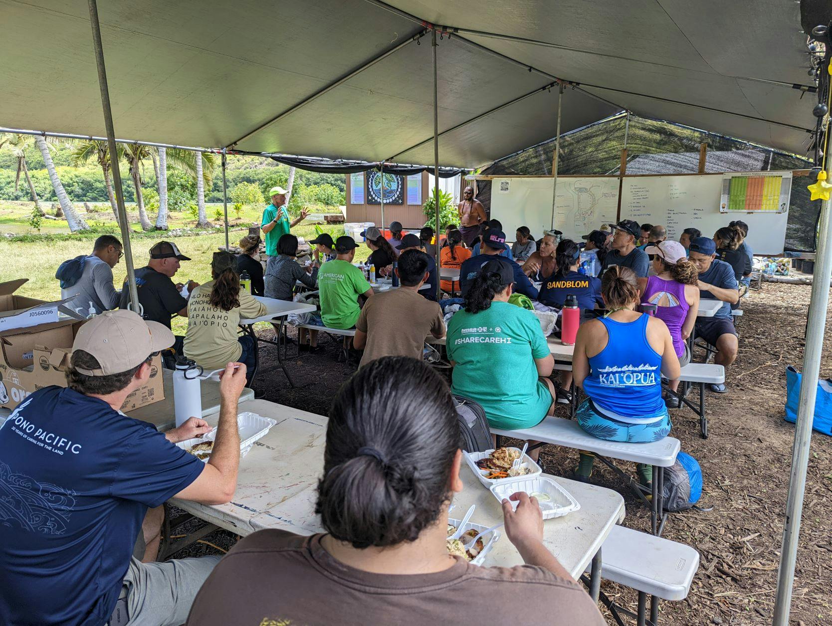 Fellows sharing a meal at the ʻĀina and Awareness Retreat.